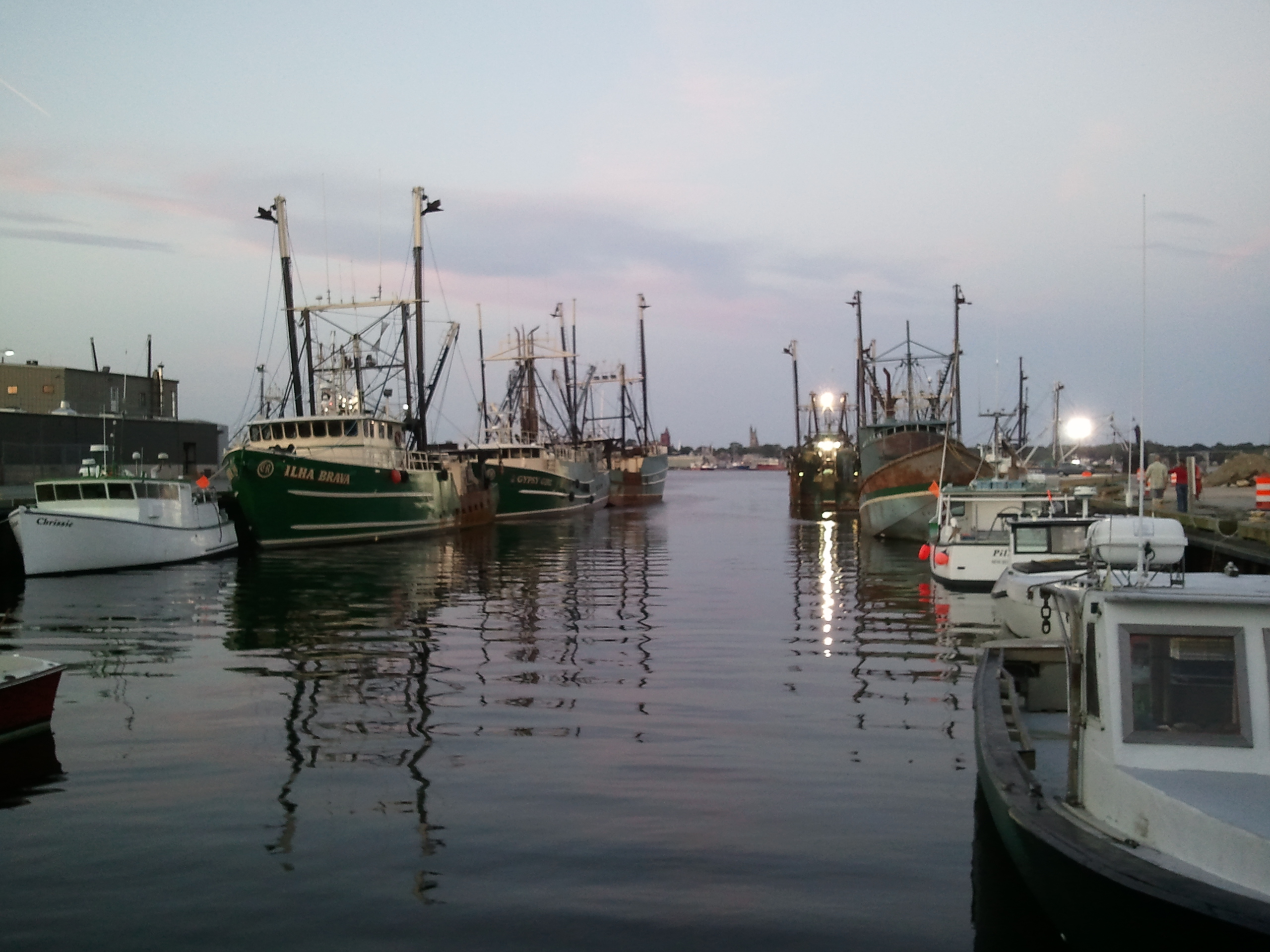 And then, based on the recommendation of a couple who came in later, we went to the Waterfront Grille, requested a table on the patio, and we were alone there too. The inside dining areas and bar were hopping, though, suggesting that patrons were on hand for something other than the best view you’ll get of the working waterfront without stowing away on a fishing boat. (The camera phone photo on this page was taken from our table.)