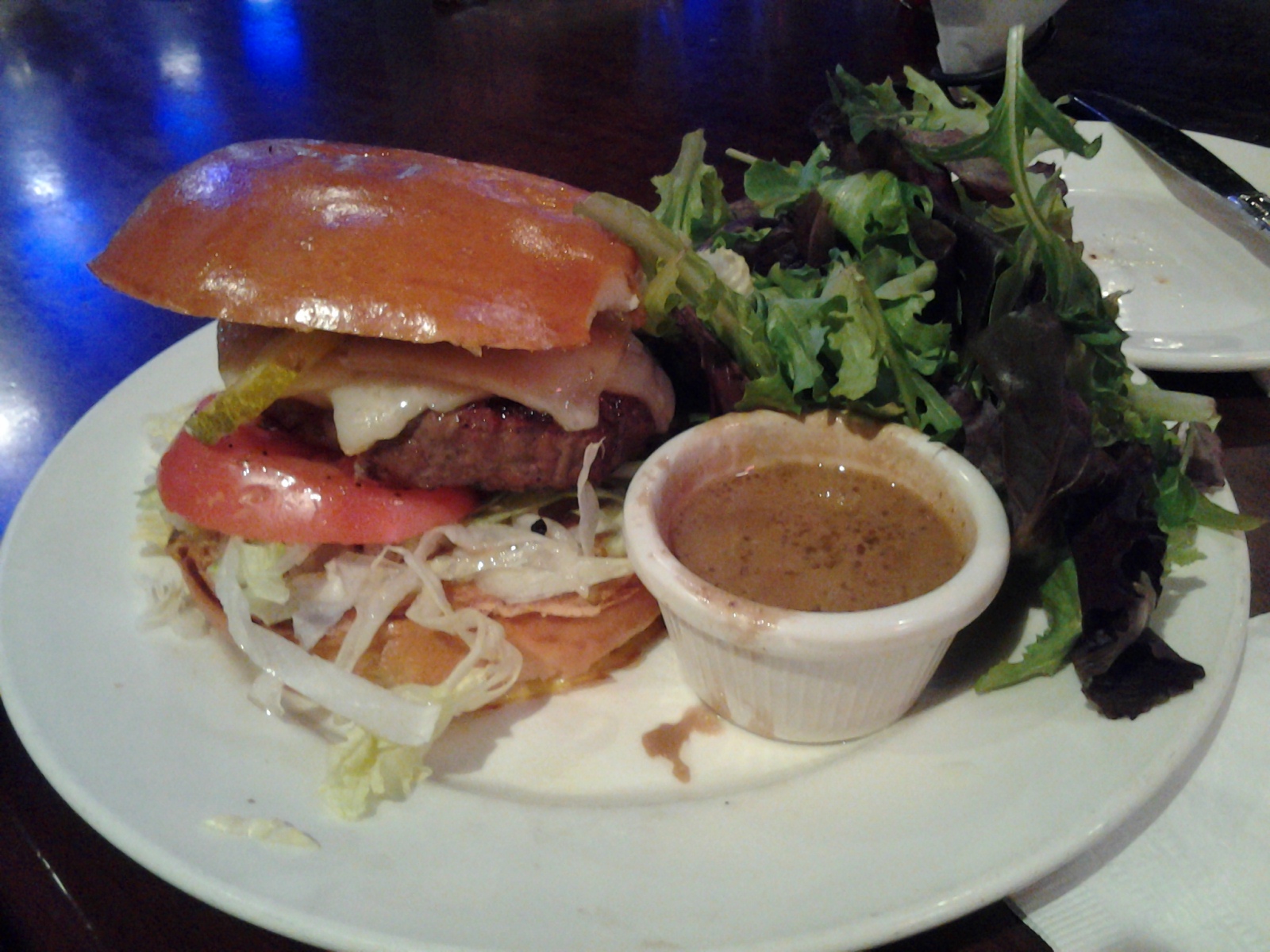 The Big Dog ordered the Sagamore Angus Burger with cheese ($11.99). It came with a side of cole slaw which had a pleasant fruitiness which we suspect was from a tiny bit of pineapple juice or something similar. It, and the burger, were both very good.