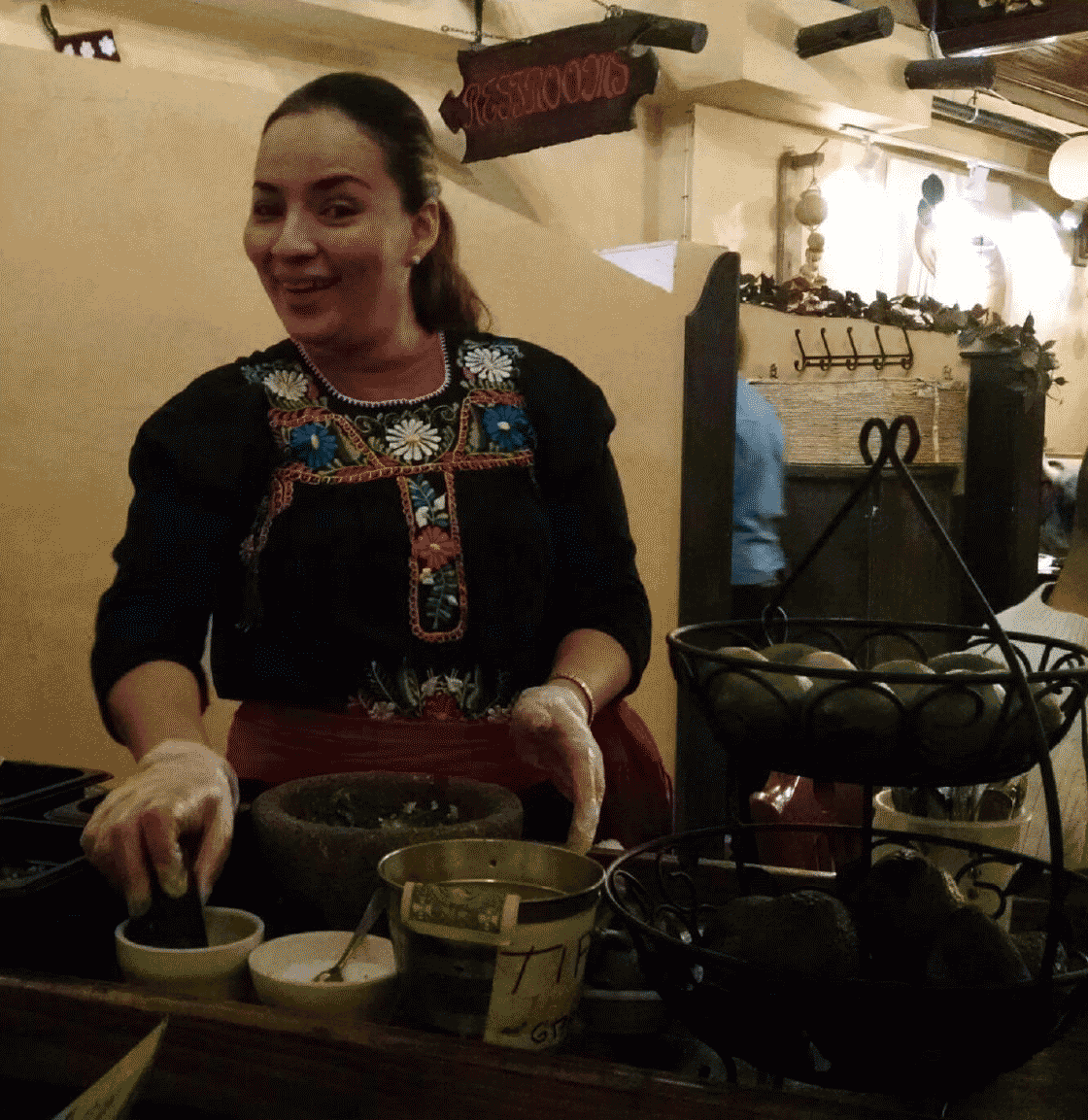 Our very attentive servers spoke with Mexican accents and dressed in festive clothing you associate with Mexico. The decor in this storefront restaurant is warm and welcoming, with walls adorned with colorful Mexican artifacts. A darker bar in the space next door, accessible from inside, looked like a great place to watch a football game. While we were there, three people got the birthday treatment, which here involves singing and having an oversized sombrero placed on your head.