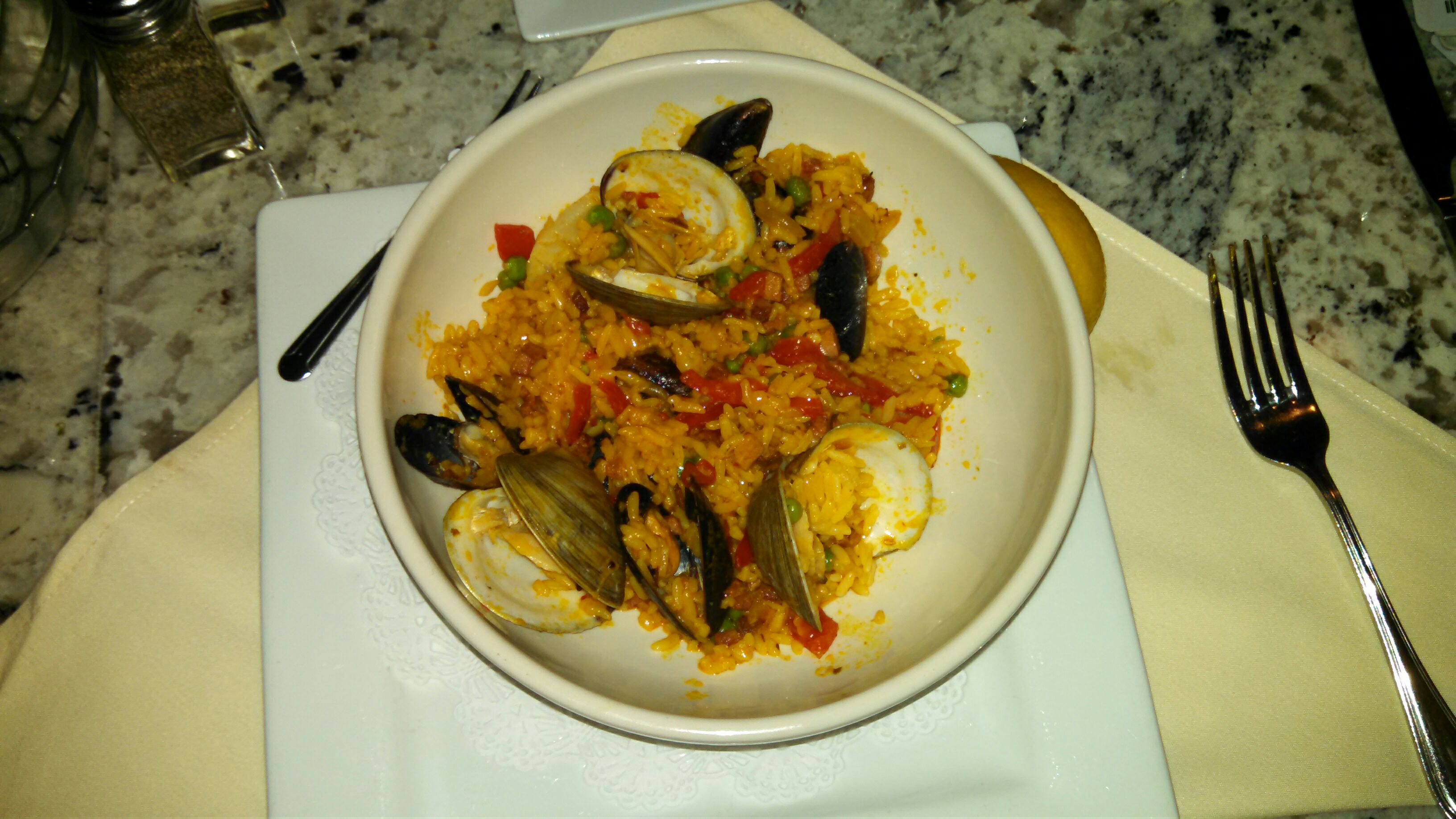 Gina ordered the paella ($21.95), which is an excellent choice for people having trouble making a decision. A big bowl of rice, yellow with saffron and rich with little chunks of tasso ham, was loaded with steamed clams and mussels, just-cooked scallops, peas, peppers, and perfect little shrimp without the annoying tail shells that restaurants so often leave on. It was a hearty and tasty dish.