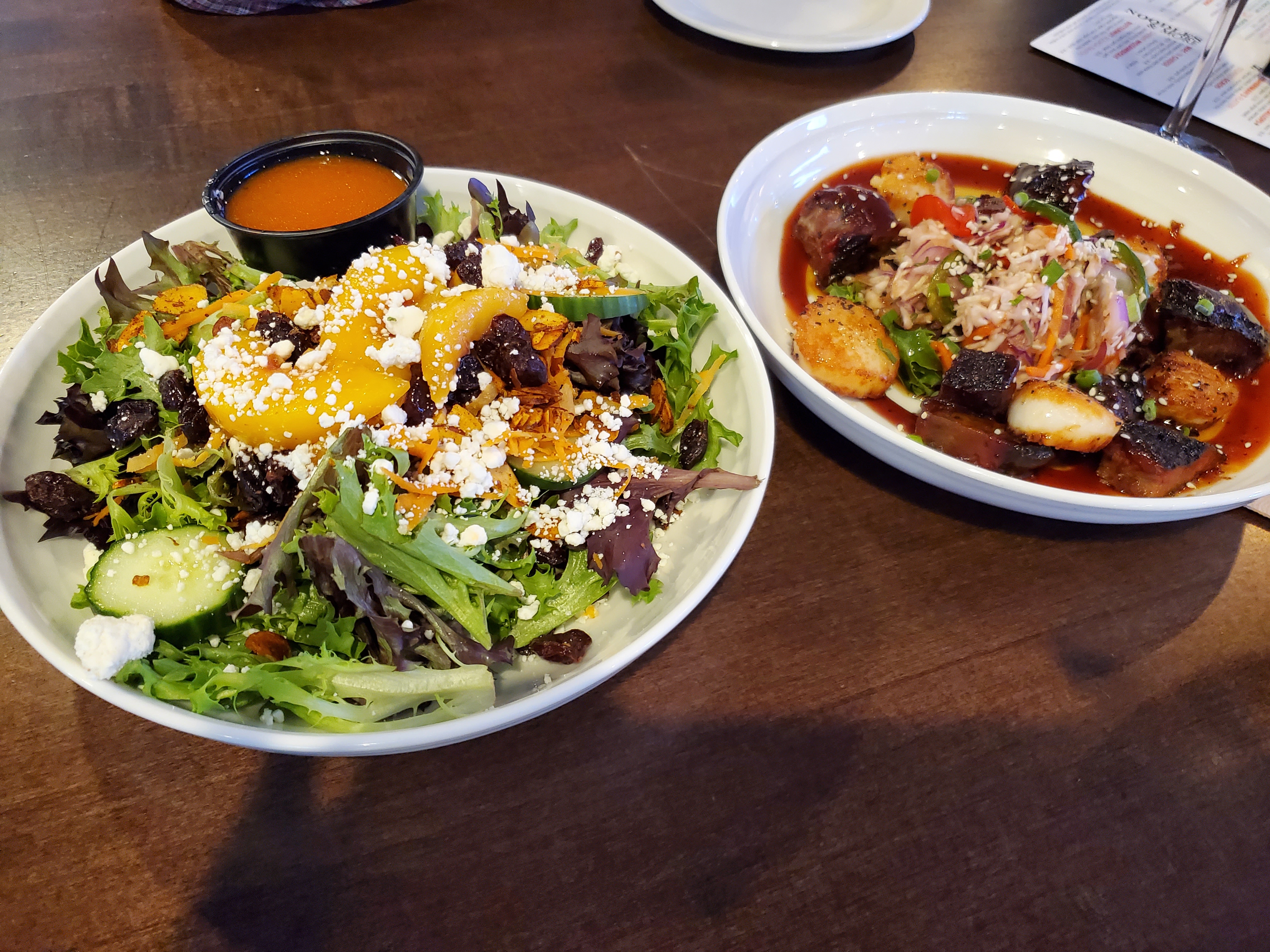 The first item on the menu, under the heading “Start Here,” is Scallops and BBQ Brisket ($13.95), described as pan-seared scallops, BBQ burnt ends, and Asian slaw. If you love scallops, you have to go here and order this. If you hate scallops, you have to do the same, and you will be a convert. They were perfectly cooked, perfectly seasoned, and untainted by the delicious sauces that adorned the plate. It was a great way to get a sense of the kitchen, and a very good value. The brisket and slaw and BBQ sauce are definitely the restaurant’s wheelhouse, but man, those scallops were really good.