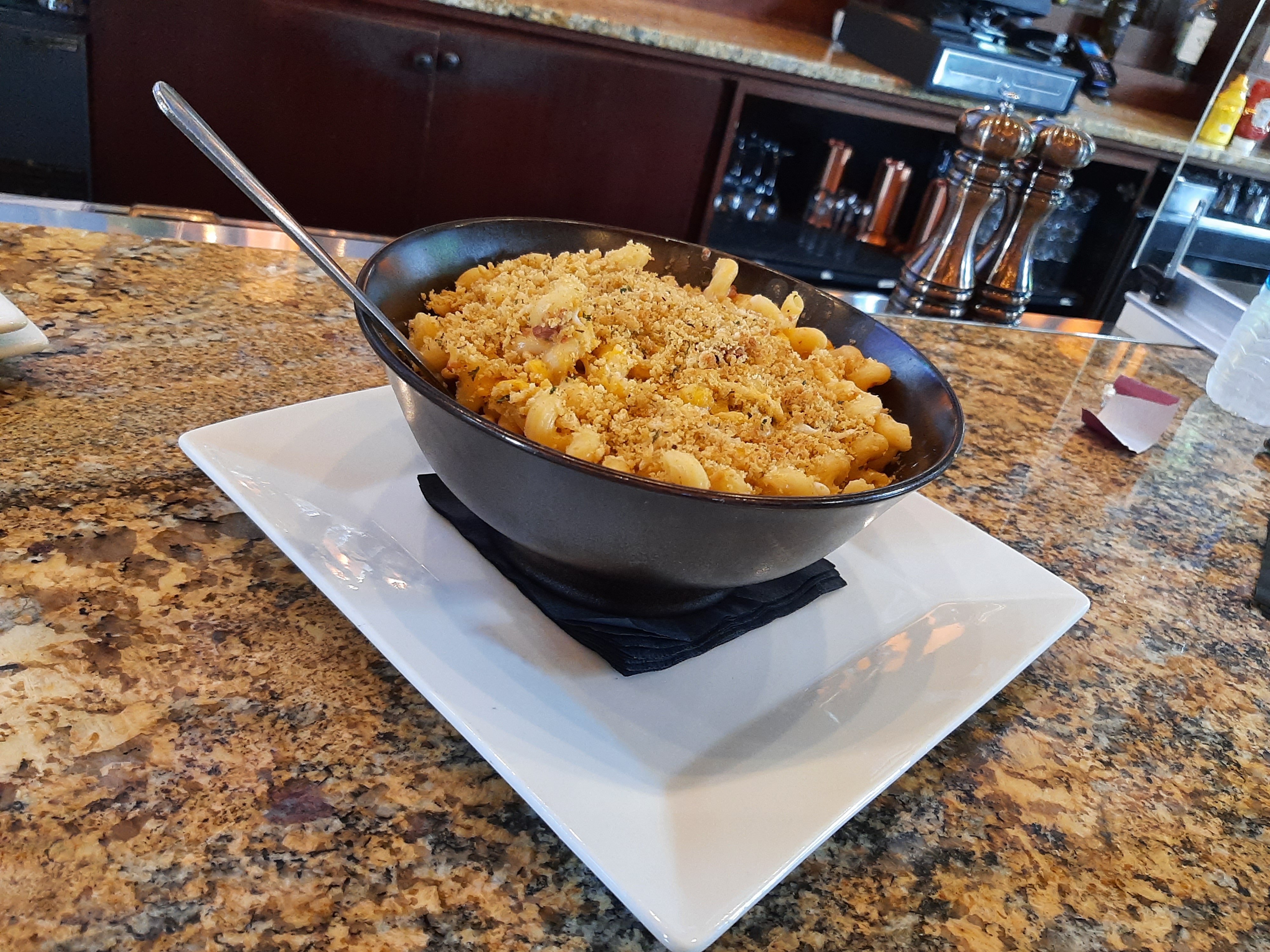 A lunch special called Spicy Texas White Bean Chili Mac & Cheese ($15) caught our eye, and we decided to split it as an appetizer. Our bartender, who never gave us her name, told us the head chef is a butcher and all the house made sausages, including the “spicy Texas” one in this dish, were genuinely made in house. Our advice: if a special says “house made,” order it. This dish was an oversized portion of spicy, cheesy deliciousness. The ground sausage lended a subtle depth.
