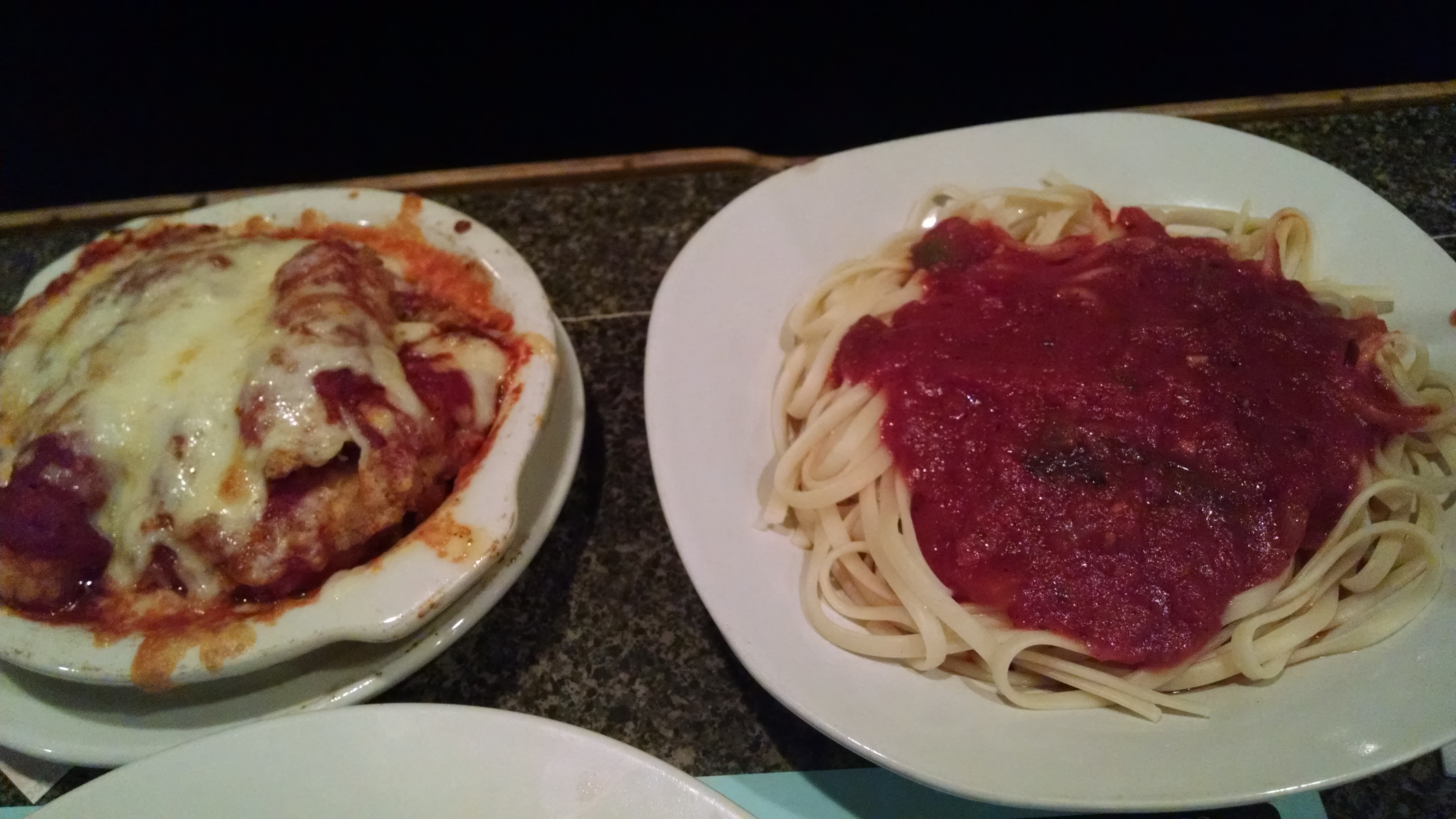 We went to one of the region’s finest Italian-themed white-tablecloth restaurants and ordered chicken parmesan with linguine and we did not like it at all.